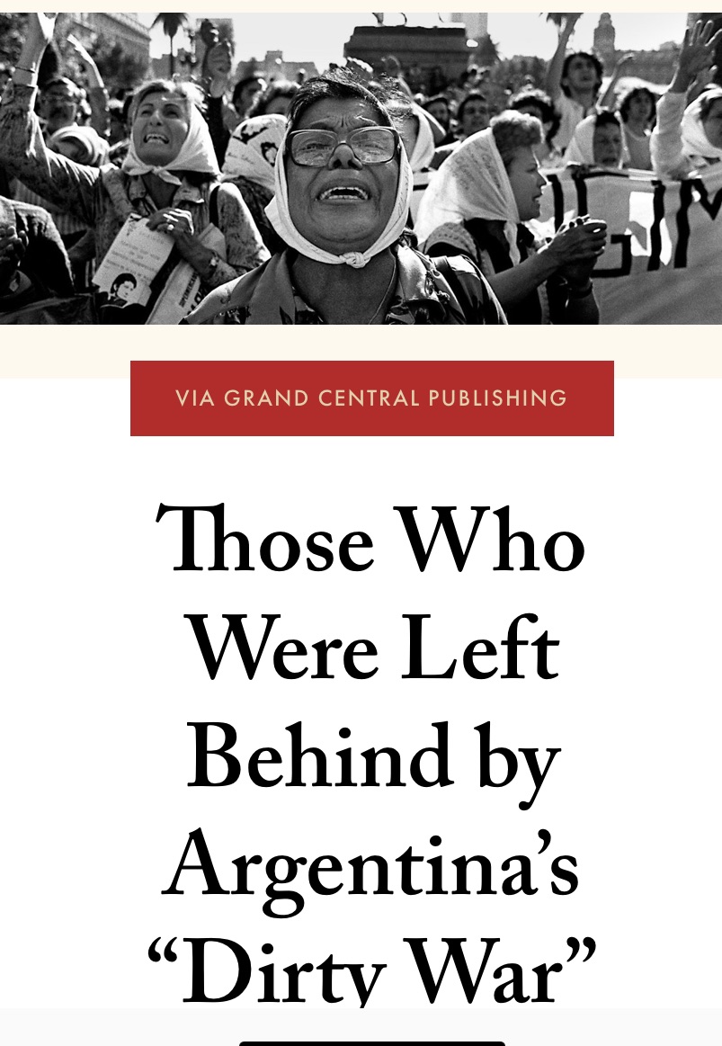 To find out how I arrived at writing my debut novel, please read here: https://lithub.com/those-who-were-left-behind-by-argentinas-dirty-war/